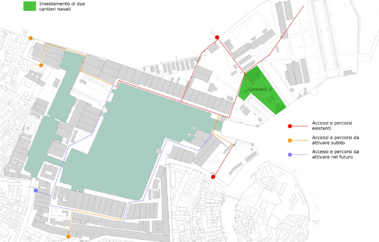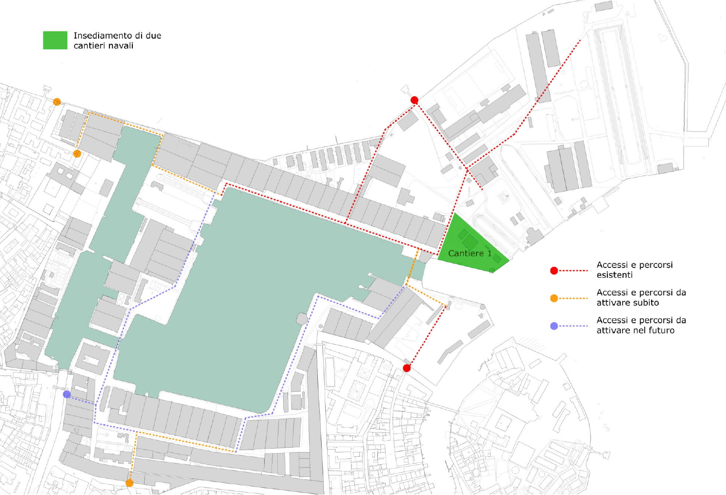 Secondo cantiere: localizzazione: aArea tra i bacini di carenaggio piccolo e medio.