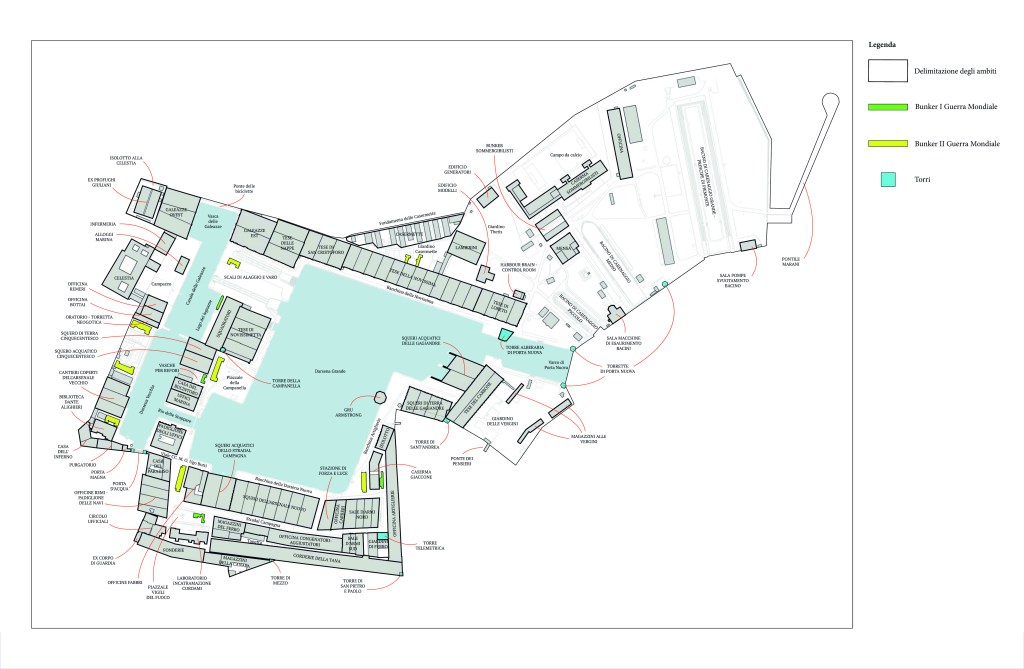 • i diversi concessionari o affittuari (Marina, Biennale e altri) disporranno esclusivamente dell’utilizzo degli edifici a loro concessi;