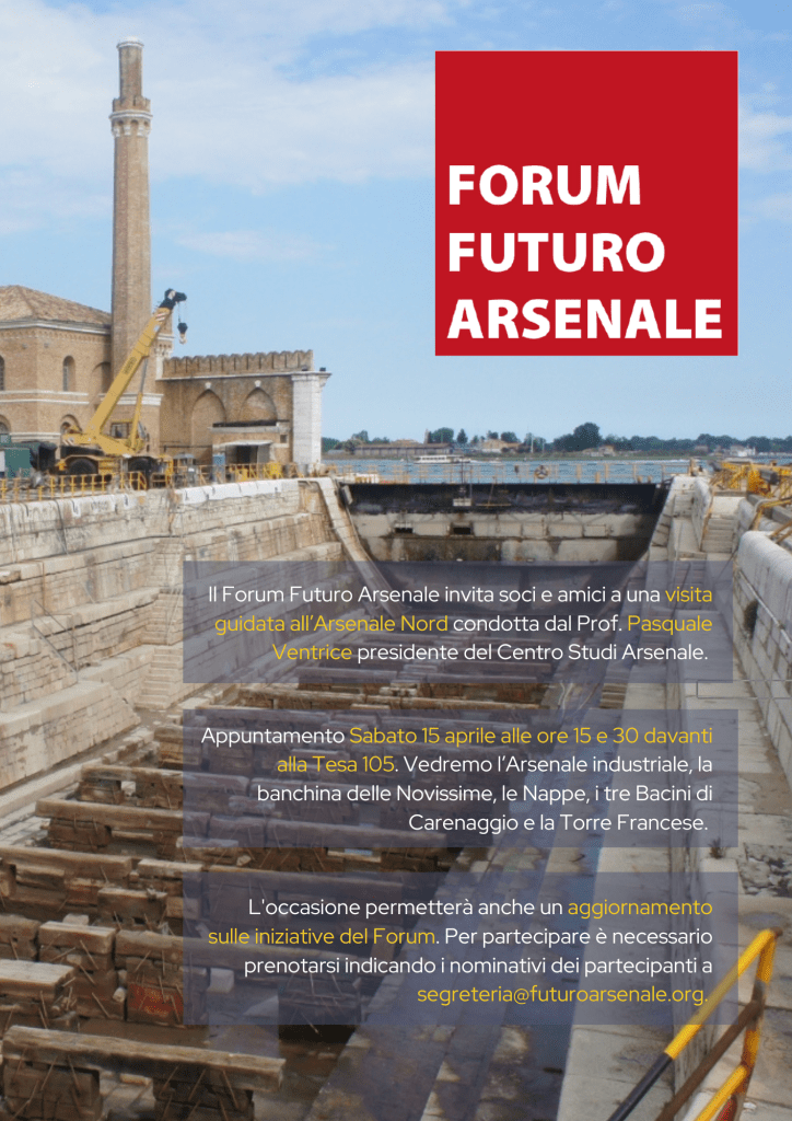 Siamo preoccupati per la mancanza di un piano, o almeno di una visione, e di adeguate iniziative del Comune di Venezia per l’insediamento in Arsenale Nord di attività permanenti mentre assistiamo al trasferimento di tutti i fondi che il Comune ha ricevuto dallo Stato per l’Arsenale (oltre 150 milioni) alla Biennale per realizzare interventi di recupero e restauro di proprietà comunali sia all’interno che all’esterno dell’area che questa ha in concessione, fanno pensare che l’Arsenale Nord sia gestito dal Comune solo per mantenelo pronto ad essere trasferito alla Biennale. Un’impresa per molti aspetti benemerita ma che deve essere indirizzata per non calpestare la citta nel suo percorso di crescita.